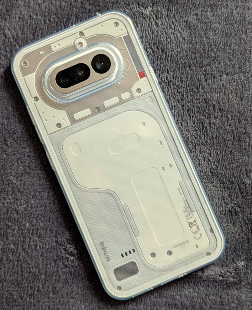 El Phone (4a) apuesta por un diseño transparente que prioriza la funcionalidad, destacando su módulo de cámaras central, el indicador LED rojo de grabación y una renovada Glyph Bar. En la parte inferior, el cristal permite ver las estructuras internas del dispositivo. Su construcción ha sido reforzada con botones metálicos, un relieve de cámara más sólido y un chasis robusto; además, ofrece resistencia IP64 y soporte para inmersiones bajo el agua controladas de hasta 25 cm por 20 minutos.