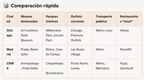 • Experiencias culturales: itinerarios que incluyen museos icónicos, parques urbanos y restaurantes imperdibles.